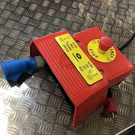 The model has a safe working load (SWL) of 500 kg, allowing four people to work on the platform with all necessary tools. An integrated toolbox ensures tools are stored safely and remain within reach. A foot pedal allows the user to adjust the platform height without interrupting work.