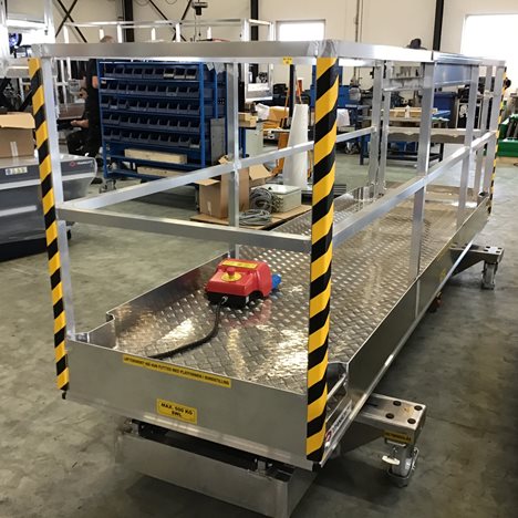 A large manufacturing company required a mobile platform to perform maintenance and operational tasks at height throughout the factory floor. Traditional steel platforms were too heavy to move and inefficient in a dynamic work environment.